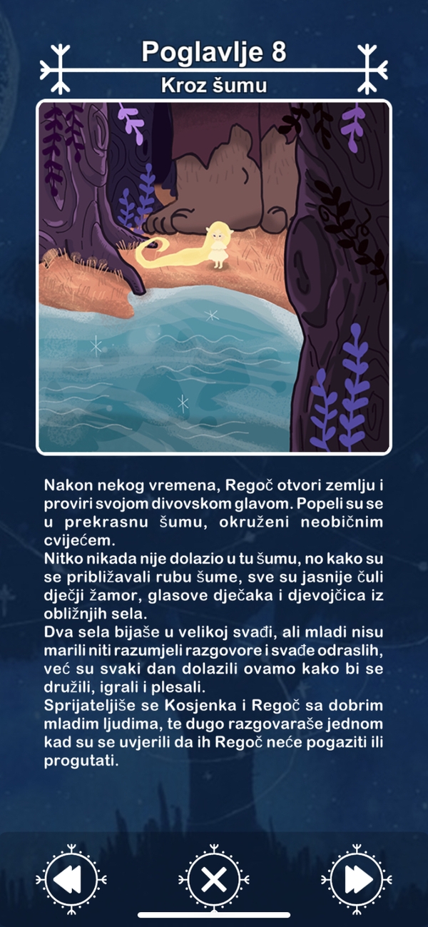 Svih osam bajki može se pronaći i u našoj Bazi bajki, a naši prijatelji Mirinda i Filip Paraman iz tvrtke Mirinda Games omogućili su nam i jedan posve novi i drugačiji doživljaj bajke Regoč iz iste zbirke. Naime, ovi ljubitelji bajki i djela Ivane Brlić-Mažuranić osmislili su igru čiji je cilj upoznati što širi broj ljudi s njezinim djelima, ali i stimulirati ljude na edukativan i pozitivan način. Stoga je izbor pao na logičke igre te je tako nastao Nonogram iz davnine. Nonogram je logička igra otkrivanja slike ili dijela slike. U ovom slučaju sa svakom novom razinom otkrit će se dio bajke Regoč uz čarobno vizualno oblikovanje mlade i talentirane ilustratorice Ane Vukšić. U planu je i daljnji razvoj igre, a ovi vrijedni kreativci već sada rade inačicu igre kroz bajku Ribar Palunko i njegova žena. U iščekivanju noviteta iz njihove radionice, pozivamo vas da prikratite duge zimske noći u toplom domu uz avanture Regoča i Kosjenke u ovom inovativnom formatu. Preuzeti je možete na sljedećim poveznicama: